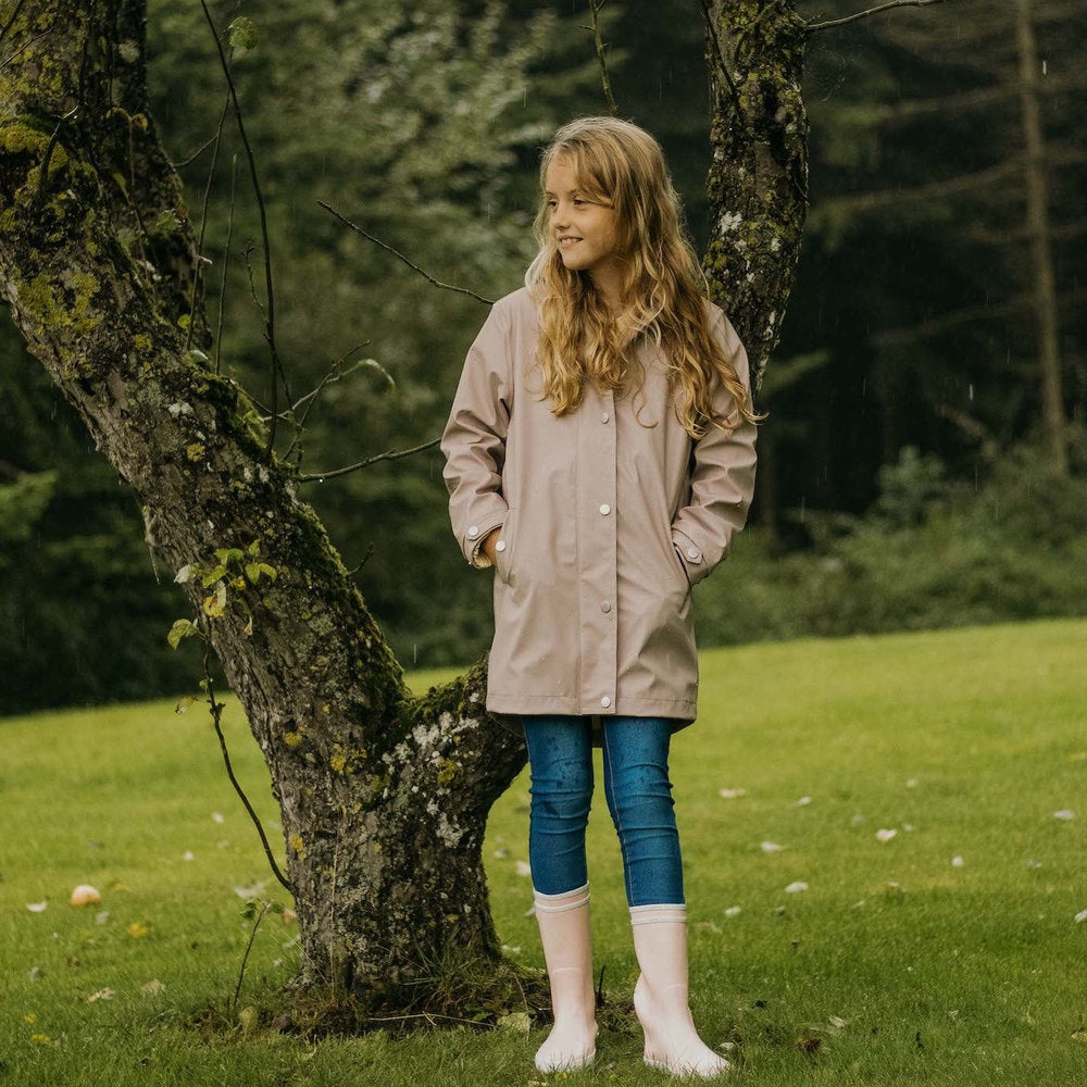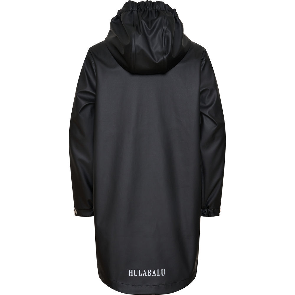 Enkel og klassisk regnjakke fra Hulabalu. Regnjakken er i et simpelt og smart design med lynlåse og trykknapper, tapet sømme samt hætte, som gør den perfekt til de regnfulde dag. Regnjakken er vindtæt og vandtæt med komfortable bomuldsforing og PU-skal. Jakken kan maskinvaskes med skånsomvask på 30 grader.