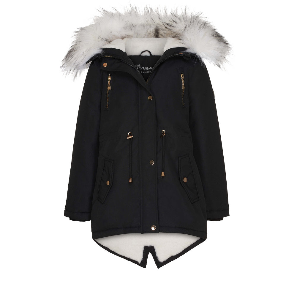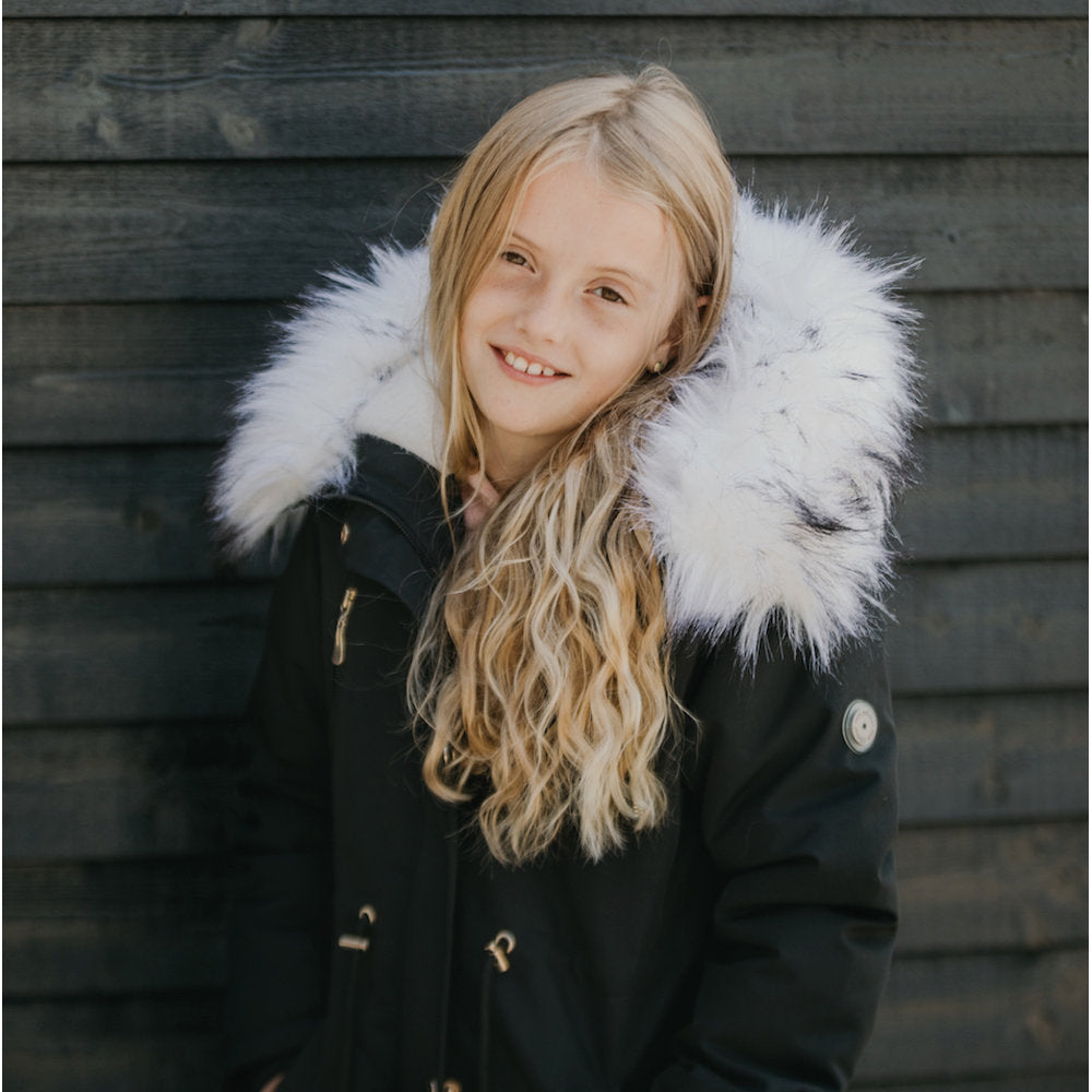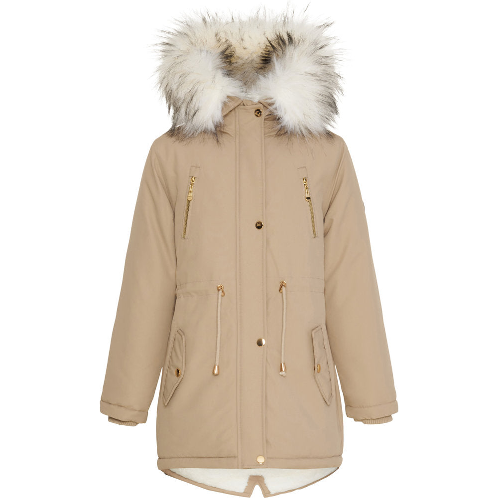Hulubalu vinterjakke med det blødeste fleecefór. Jakken er blød og lækker at have på, samt den er vandafvisende. Den har fine detaljer foran med flere lommer, der giver den et fint udtryk. Der er rib ved ærmerne så den sidder til, samt pelskraven kan knappes af. Ved taljen har den en snor så den kan strammes ind.