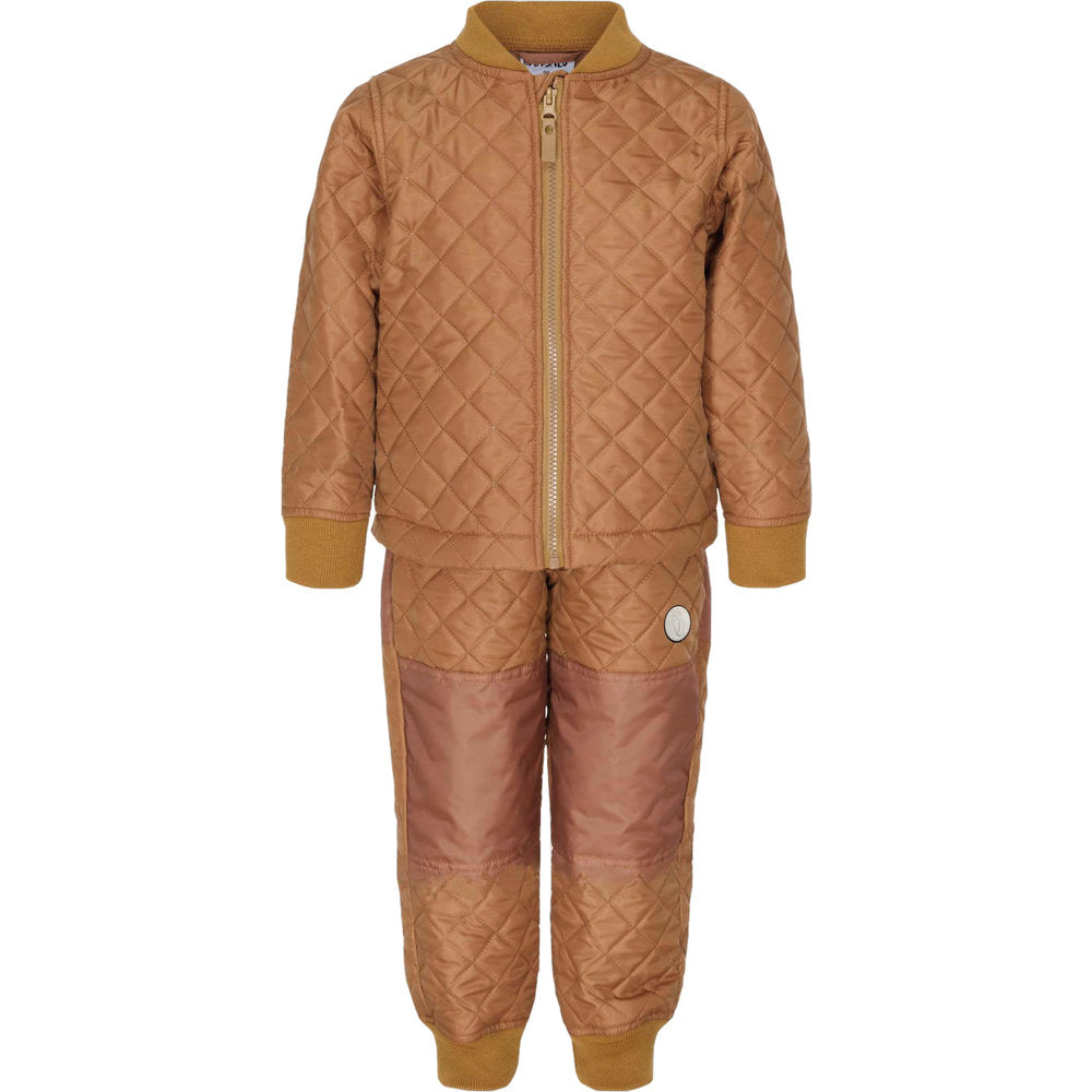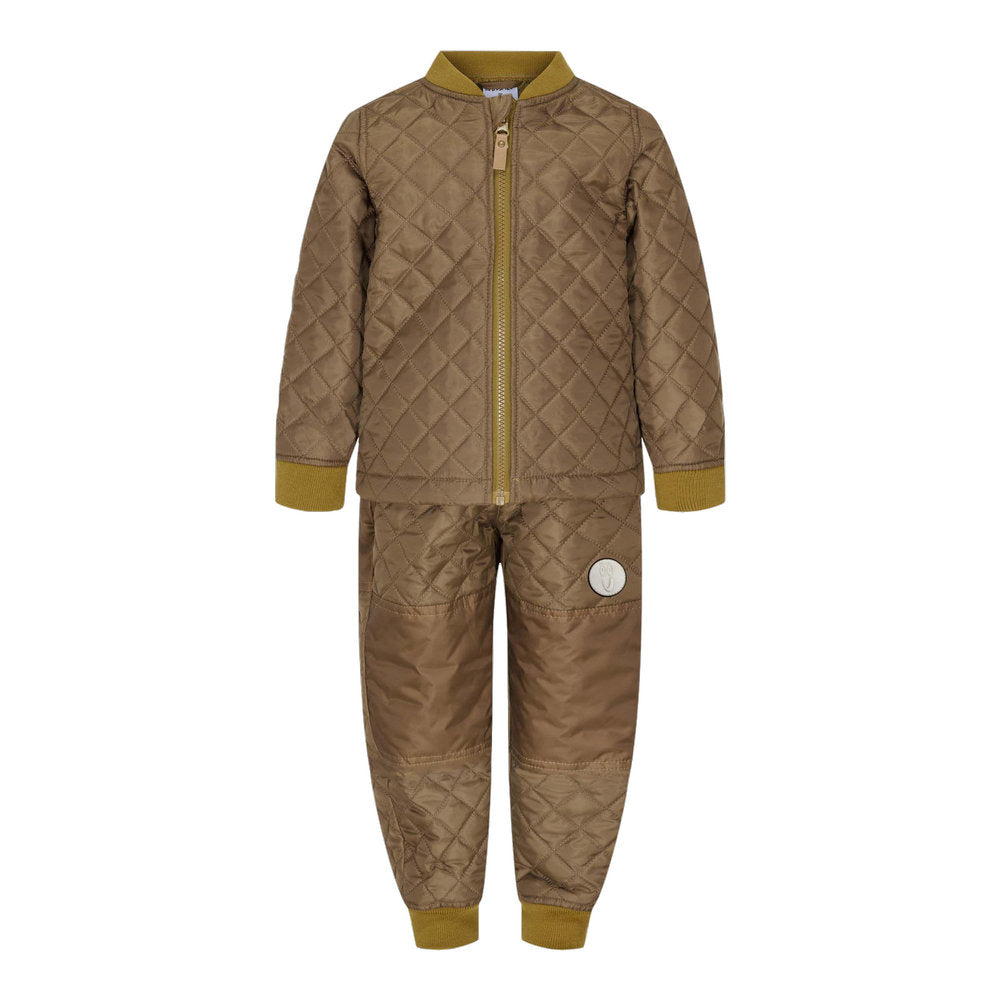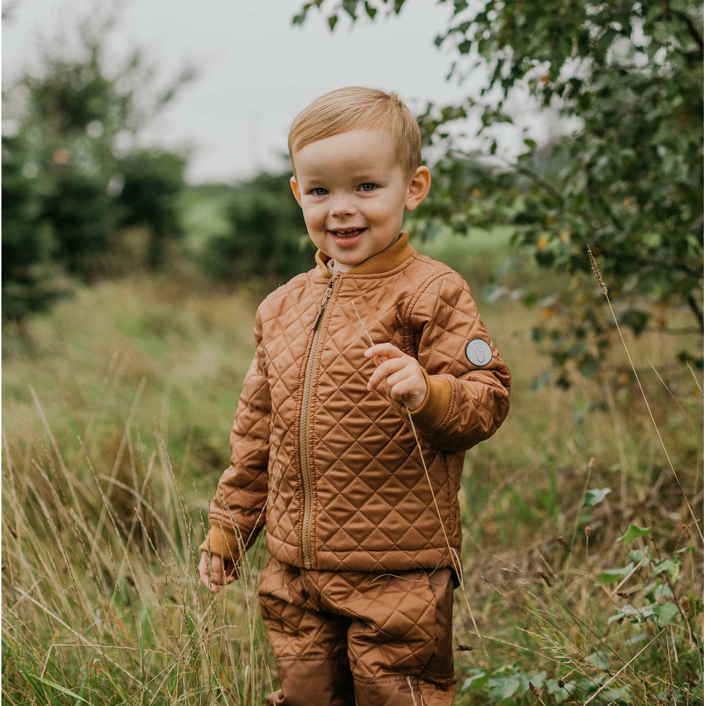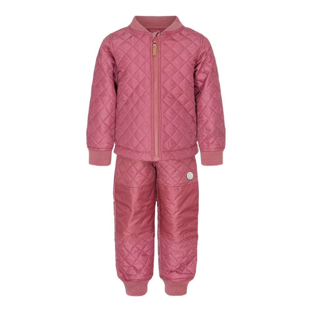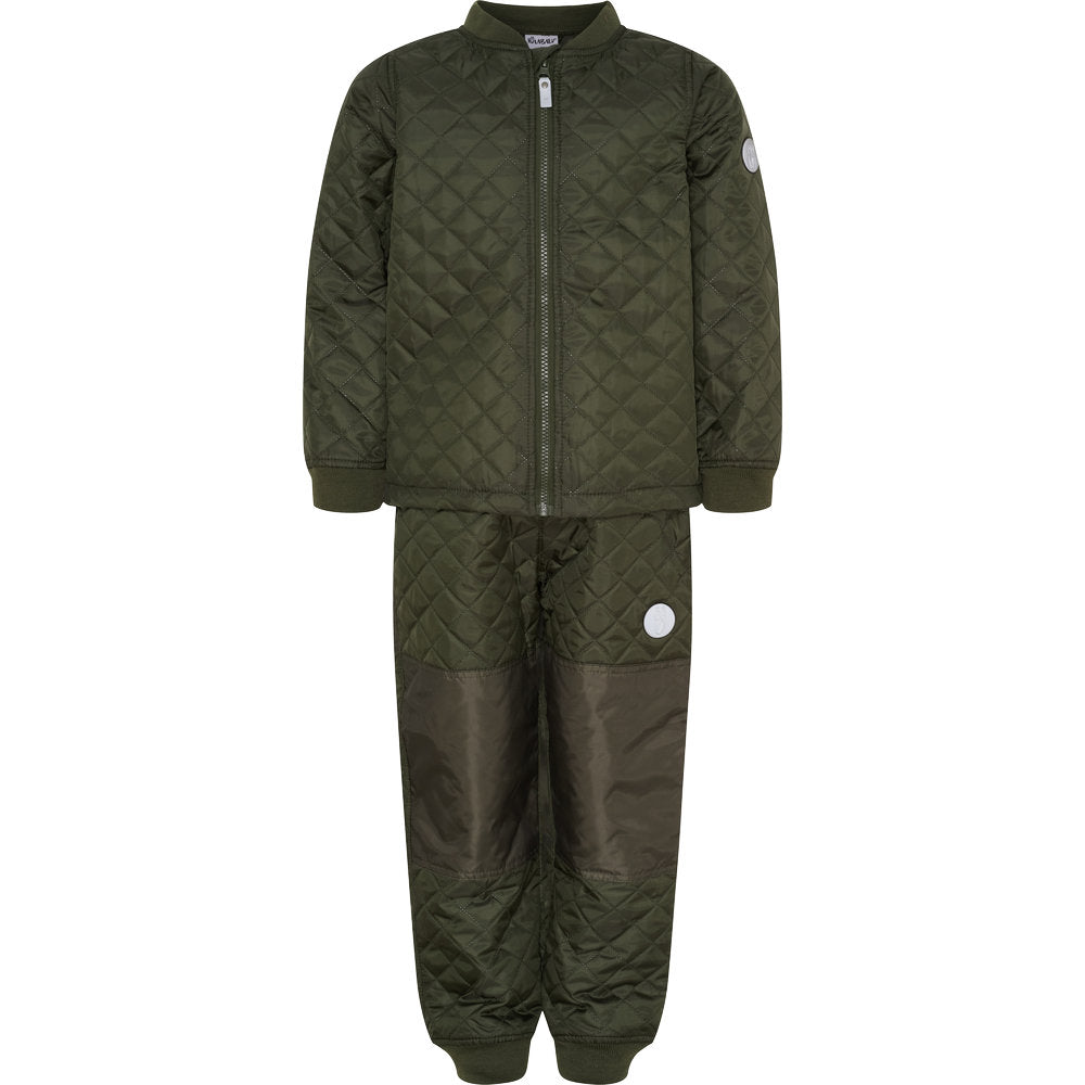 Det klassiske termosæt fra Hulabalu, der kan fås i et bredt udvalg af lækre farver. Termosættet har et simpelt design, hvor funktionaliteten har været i fokus. Bukserne har elastik i taljen, jakken kan indstilles med en snørre forneden efter behov, samt der er rib ved ærmer, fødder og hals, som er dejligt blødt og behageligt. Sættet er vandafvisende og vindtæt, hvilket gør det ideelt til barnet der skal være ude hele dagen.