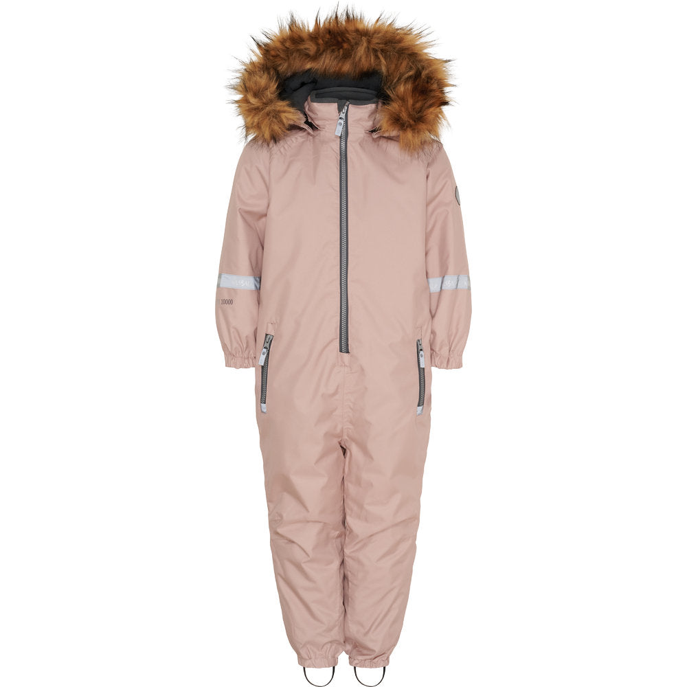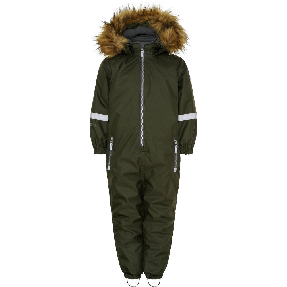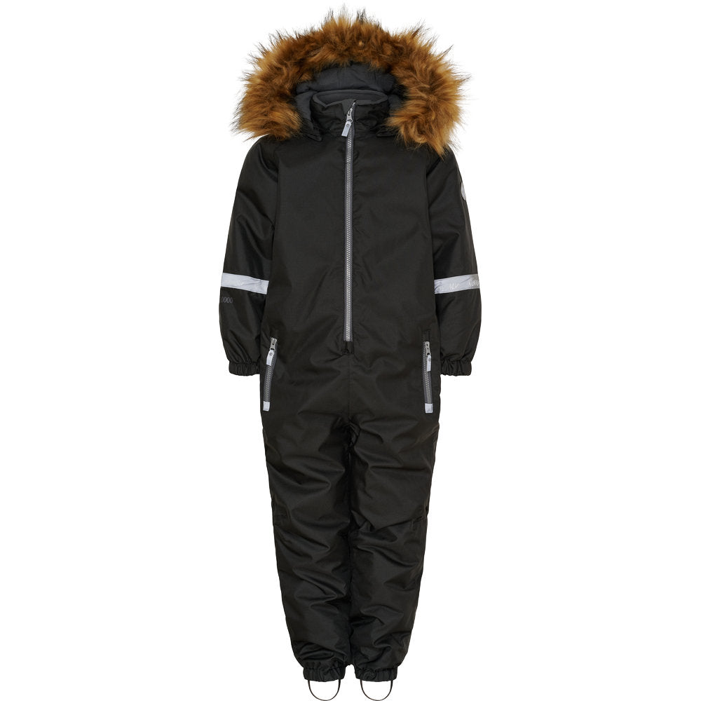 Den har refleksdetaljer og elastik ved ærmerne, lommer med lynlås og fodstropper der er aftagelige. Flyverdragten kan lynes helt op ved halsen og har et vandtryk på 10.000 mm., så den er god til barnet der skal være ude hele dagen.
