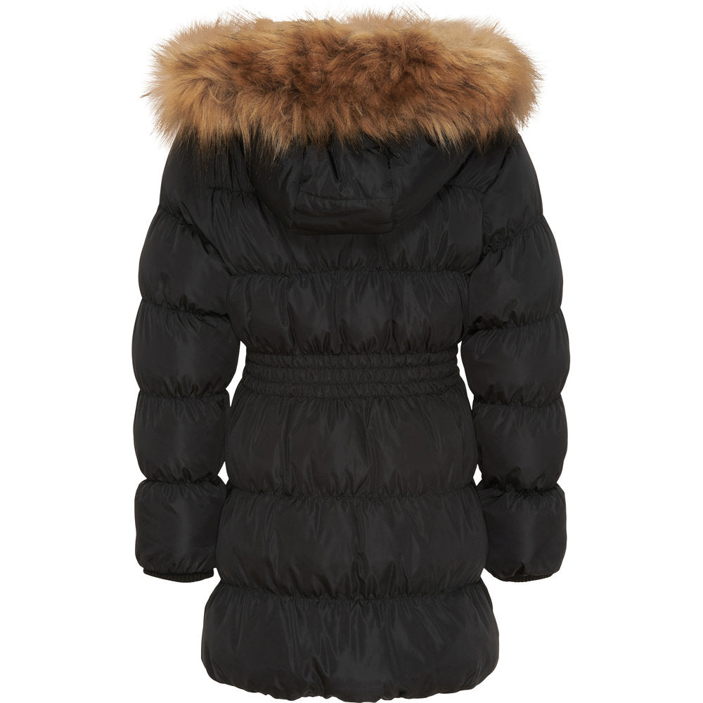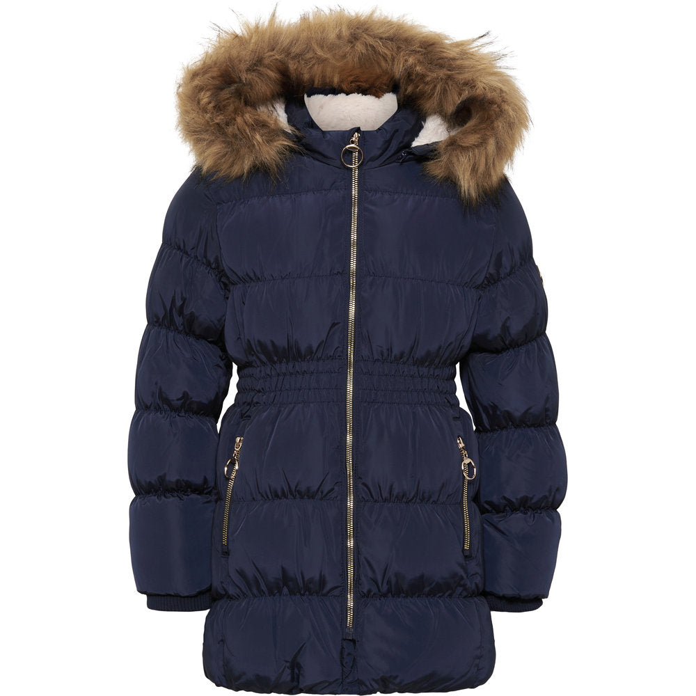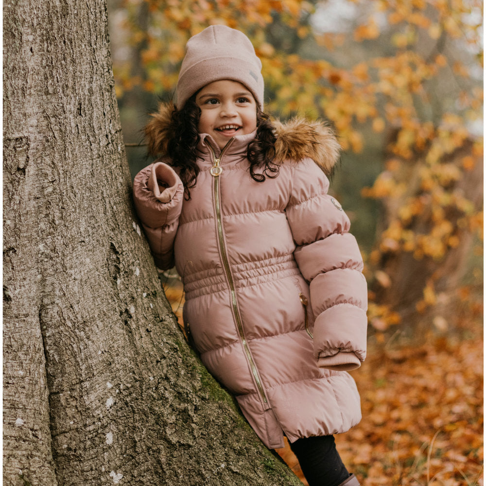 Hulubalu vinterjakke med blødt fleecefór indvendigt. Jakken har den fineste detalje med elastik ved livet og puffede ærmer. Hætten er aftagelig og pelsen kan lynes af efter behov. Der er snefang ved ærmer og lommerne har lynlås.