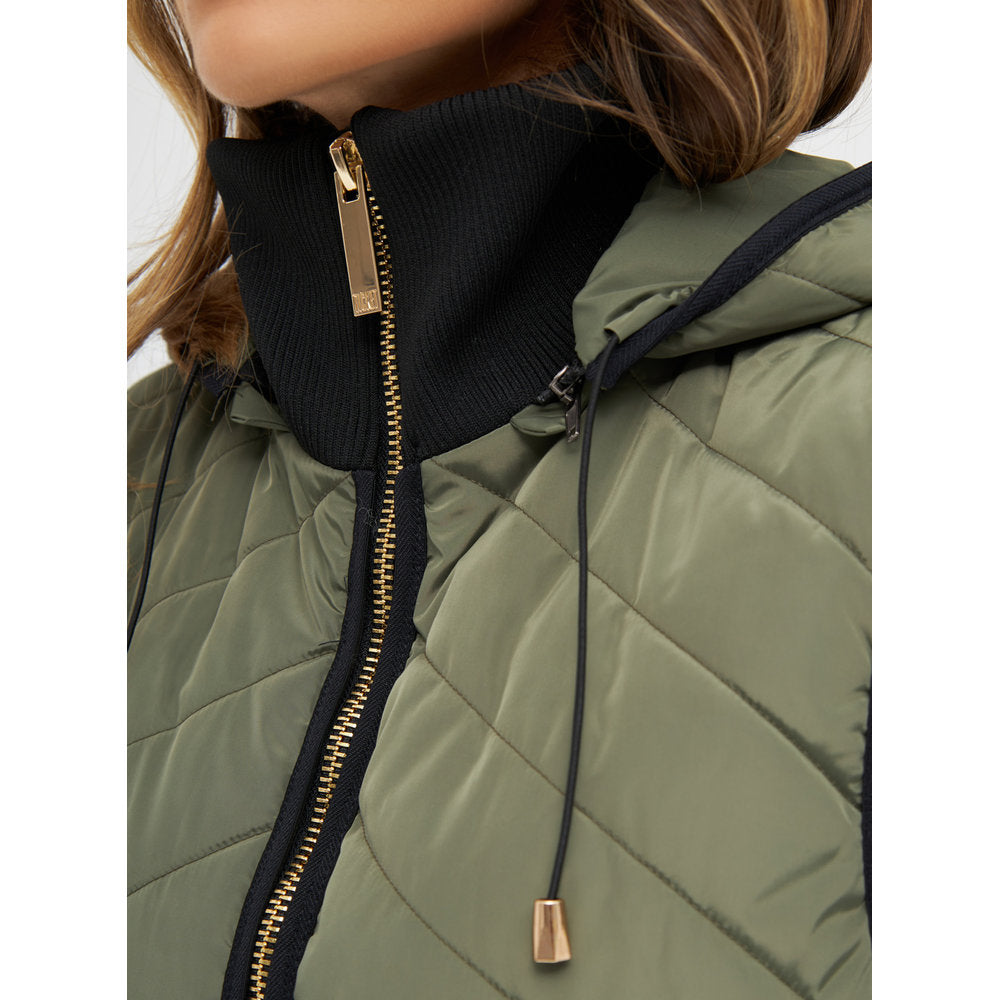 Elegant overgangsvest med fine detaljer i messing/guld og stor hætte. Vesten har en lige pasform, som klæder alle kvinder. Vesten har desuden dobbelt lynlås, der gør den ekstra prakrisk.