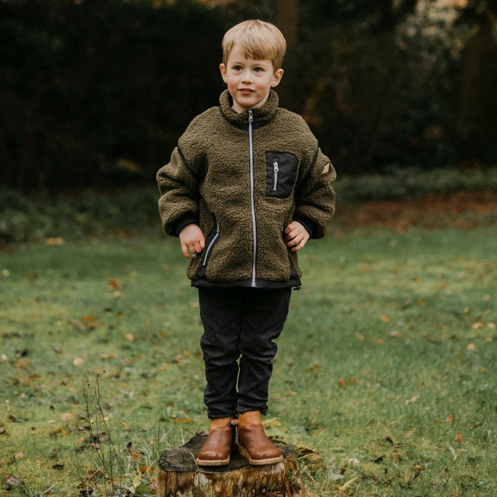 Sej vendbar jakke til børn fra Ticket To Heaven. Den er blød på den ene side, hvorimod hvis man vender den om, så er den sort i et vandafvisende materiale med et simpelt udtryk.